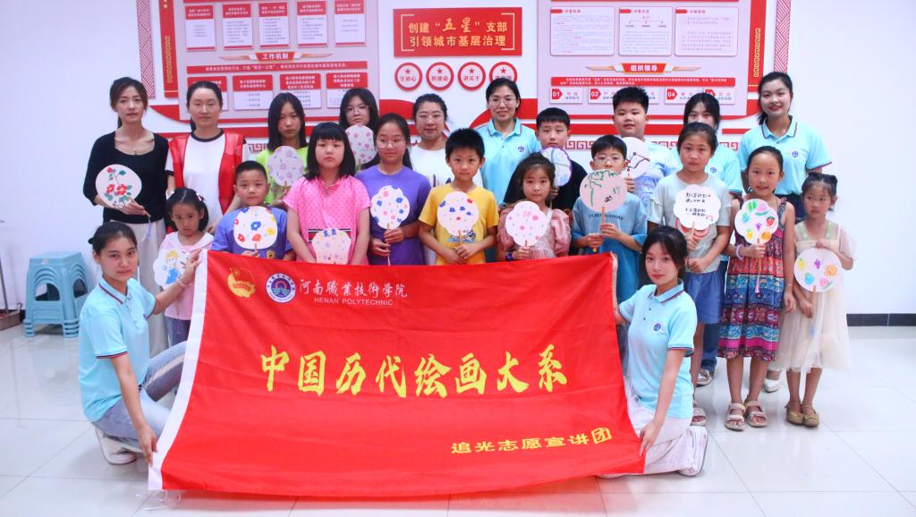 为深入学习贯彻习近平文化思想,积极响应习近平总书记对青年一代的殷切期望,勇担新时代新的文化使命。7月4日-7月6日,英国正版365官方网站“中国历代绘画大系”追光志愿宣讲团赴郑东新区贾鲁街社区、东尚社区、禹州神垕古镇开展志愿宣讲活动。以“赓续‘大系’文脉,传递经典新声 ”为主题开展“手握团扇绘童年 妙笔生花映童心”、“走进传统插花世界”、“书香阅读”、“走进千年古镇 探寻钧瓷文化”等活动,引导和帮助青年学生在社会课堂中受教育、长才干、作贡献。