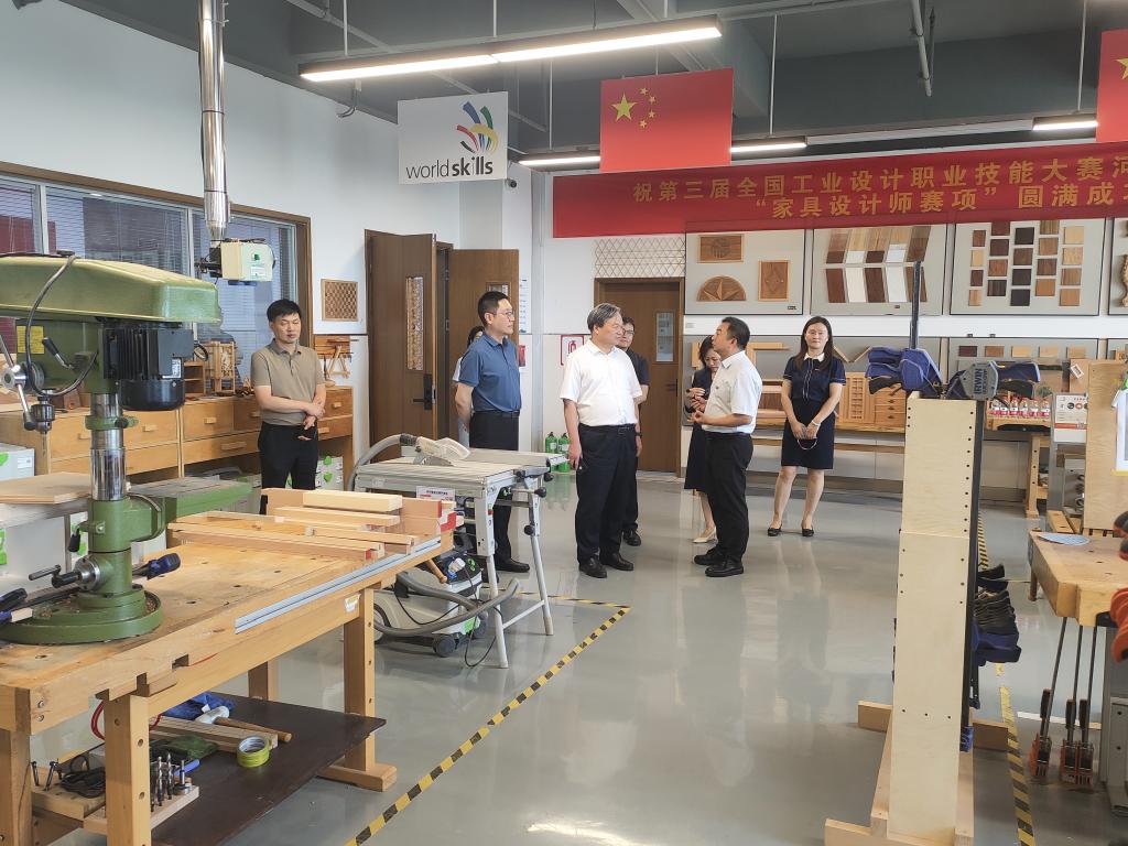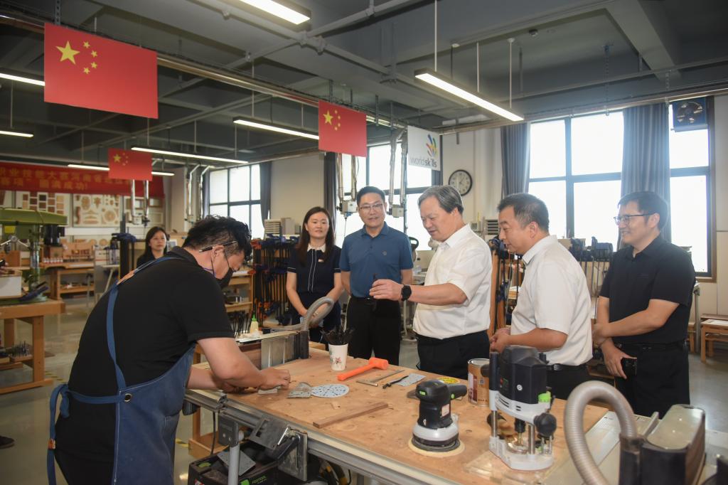 8月26日下午,中国高等教育学会职业技术教育分会会长、全国高职高专党委书记论坛委员会副主任委员、浙江金融职业学院原党委书记周建松教授来英国正版365官方网站考察交流。校党委书记厉励、副校长任枫轩、数创学院党总支书记兼院长徐海燕、副院长王斌等陪同周教授实地考察了英国正版365官方网站合鼎楼六楼木工创意工作室,并观摩了王增、赵永立、陈晨、刘培、邓兆伦几位老师暑期备赛情况。调研期间白玫老师介绍了英国正版365官方网站的发展历程及人才培养模式,王斌副院长重点汇报了大师工作室建设、木工技艺传承、竞赛组织以及校企合作技术成果转化等情况。周教授对英国正版365官方网站实训基地建设、人才培养特色以及育人成效等方面给予了充分的肯定。(供稿:王伟 审稿:王斌)