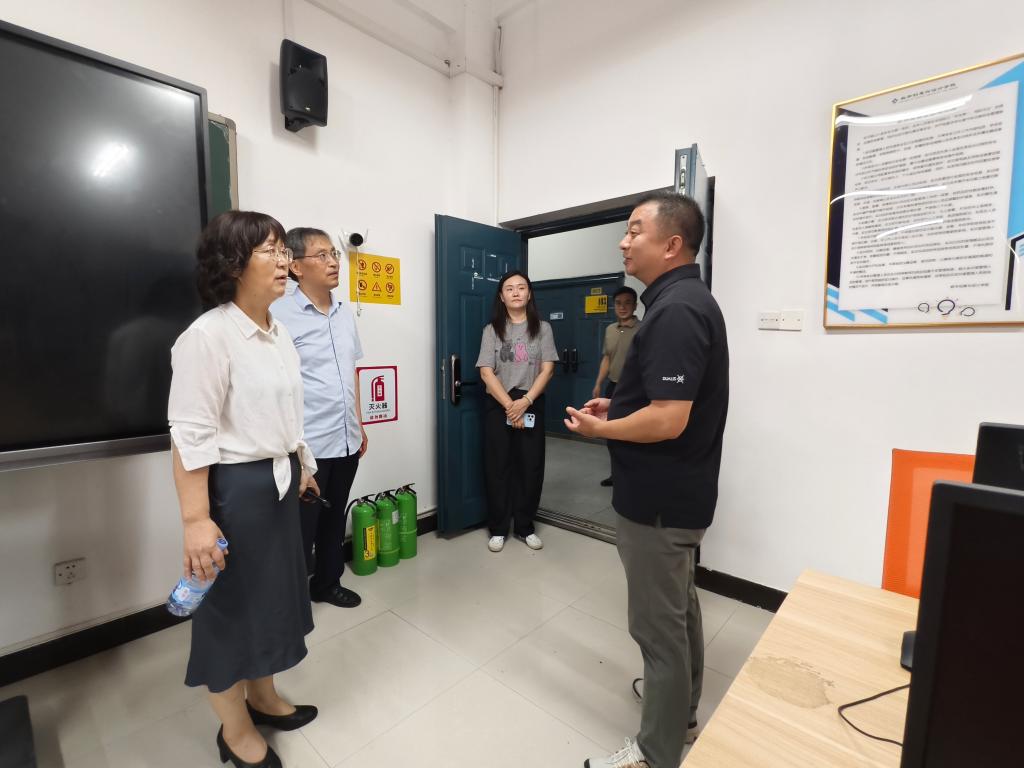 新学期伊始,为营造安全有序、和谐稳定的实训教学环境,切实做好本学期实验实训室安全各项工作。8月31日下午,由副校长肖珑带队,综合实训中心主任张凯、副主任李玉芝、关克鑫及王彬组成的安全检查组,对数创学院敏行楼四楼实训室进行了安全管理工作大检查。数创学院院长徐海燕,副院长王斌、李宁,副书记田景娜及实训中心相关人员陪同检查。