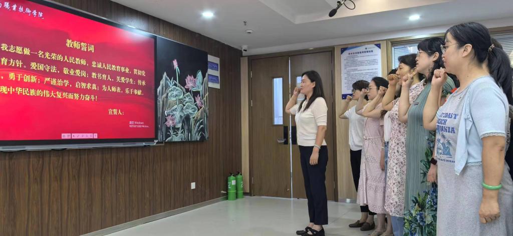 会上,全体教师重温教师誓言,任枫轩为从教二十年的教师送上了鲜花及纪念牌,教师代表围绕专业建设、学生管理、科研工作、教师培养等方面畅所欲言,提出了许多宝贵意见和建议,为学校高质量发展积极建言献策。