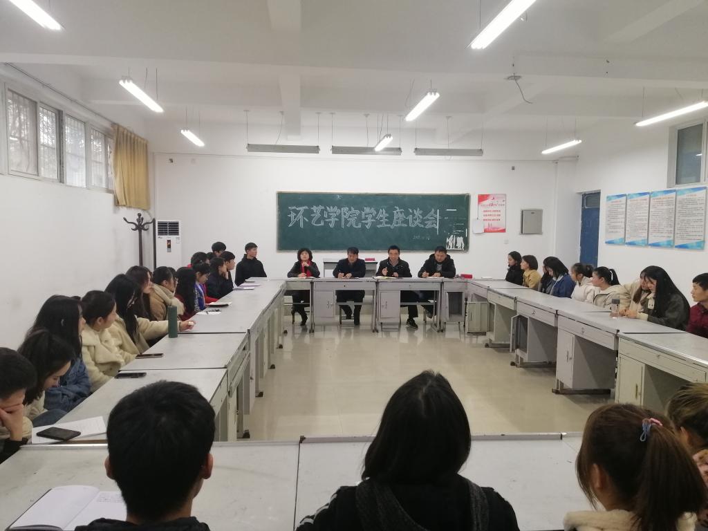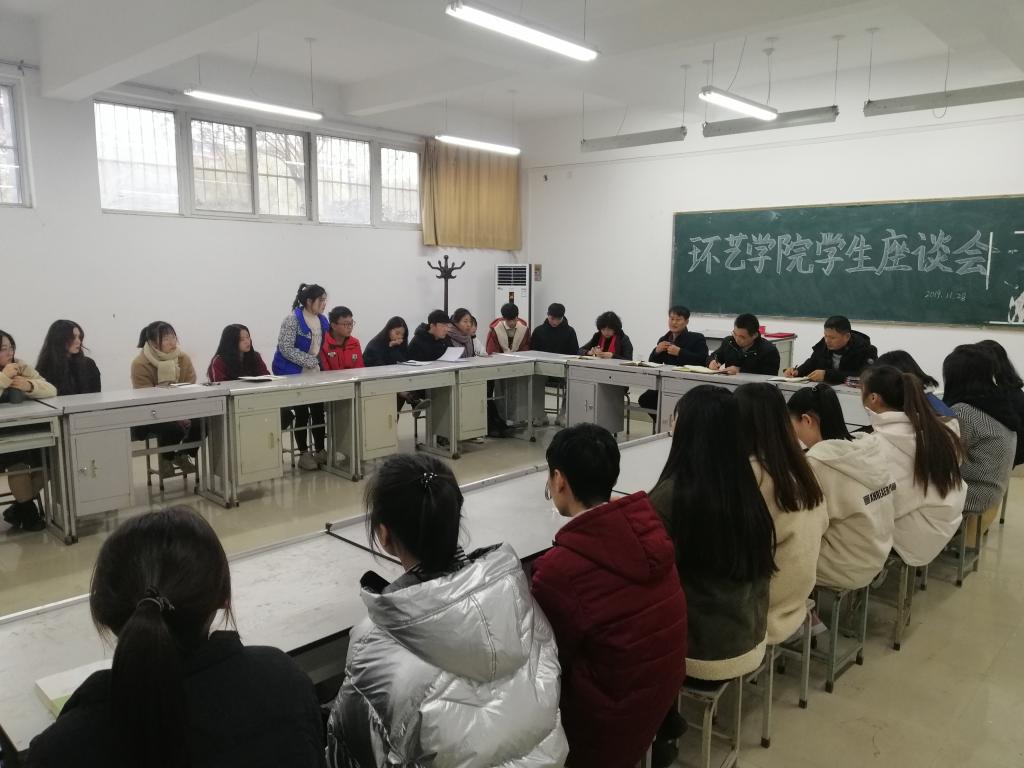 11月28日下午,环艺学院在四号楼附4110教室召开学生座谈会。2018、2019级共45名学生代表参加座谈会,院党总支书记王永、副院长司志国、副书记王静出席座谈会,会议由院团总支书记朱函兵主持。