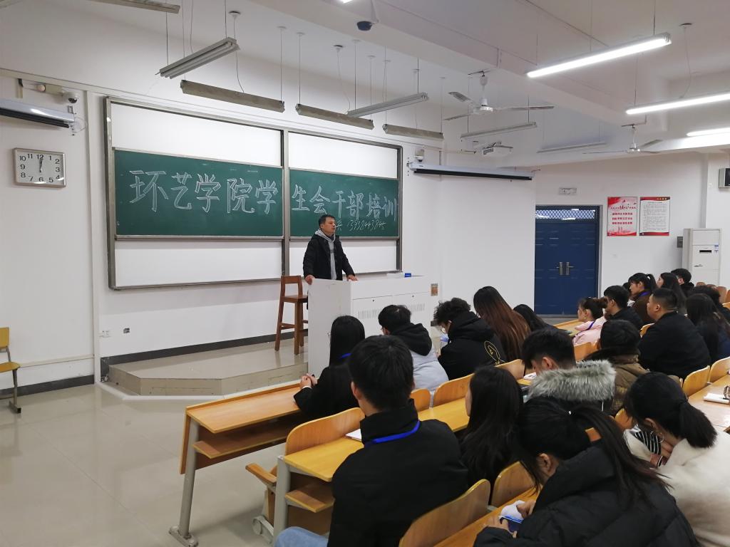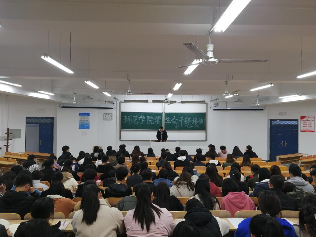 为加强学生干部队伍建设,11月26日下午,环艺学院在3105教室召开学生会干部培训会,环艺学院学生会全体成员参加本次培训会,培训会由院团总支书记朱函兵主持。会上,团总支书记朱函兵对本学期开学以来的工作进行了总结和点评,强调全体学生会干部要严格要求自己,起好带头作用,在工作中做到尊重老师,学会合理安排自己工作和学习的时间,更好地为环艺学院全体老师、同学服务。