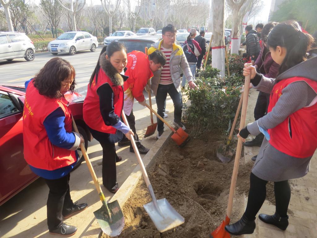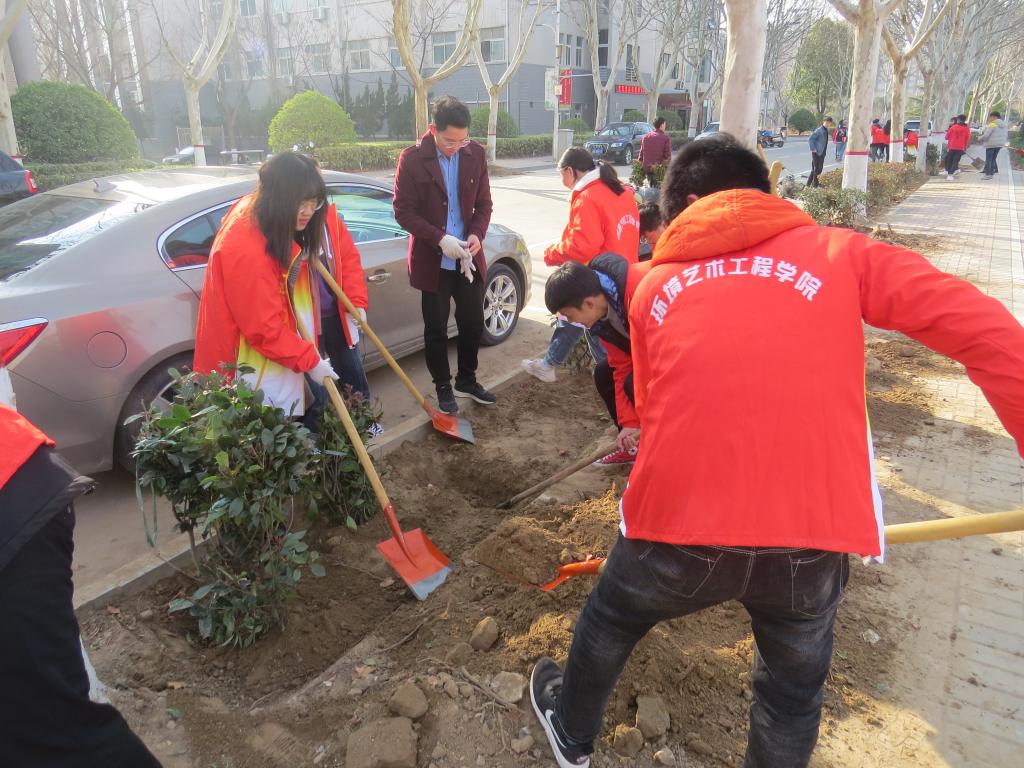 在植树节和英国正版365官方网站雷锋月到来之际,3月8日上午,环艺学院党总支副书记王静、院学生支部党员和部分院学生会成员在学校主干道开展志愿义务植树活动,为校园美化贡献自己的一份力量。