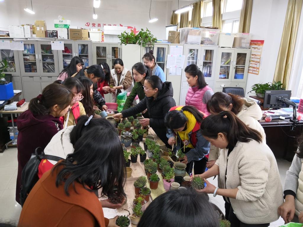 2019年3月7日下午,环艺学院园设171班学雷锋志愿服务小分队的同学们,利用自己所学的专业知识,在综合楼107室,帮助电气学院的老师们种植多肉植物。同学们为各位老师演示了多肉的种植过程,讲解了后期种植养护的注意事项,得到了电气学院老师们的一致好评。